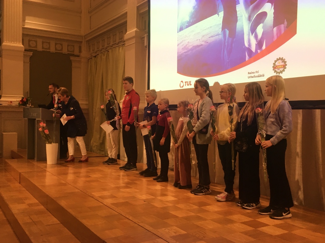 Reino Fri urheilusäätiön Katariina Pyysalo ja Riku Ahola jakoivat Jyryn nuorille urheilijoille stipendit. Jyryn suunnistuksesta (Rasti-Jyry) stipendin saivat Ada Seitajoki ja Aleksi Kuronen. Yleisurheilun stipendin saivat Eemeli Taponen ja Alisa Taponen. Jyryn tyttöjen voimistelujoukkue Lumenian stipendin vastaanottivat Siiri Tuorila, Noora Etienne, Senja Minkkinen, Esther Thewrewk-Pallaghy , Sara Mäntylä, Aila Schulman ja Anastasia Kachorina sekä heidän valmentajansa Anna Partanen. LÄMPIMÄT ONNITTELUT NUORILLE URHEILIJOILLEMME! |